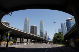 FILE PHOTO: People cycle on a road at the Central Business District (CBD) in Beijing, China May 16, 2022. REUTERS/Tingshu Wang/File Photo
