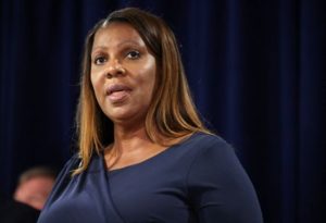 FILE PHOTO: New York State Attorney General Letitia James speaks at a news conference after former U.S. President Donald Trump’s White House chief strategist Steve Bannon arrived to surrender, in New York, U.S., September 8, 2022. REUTERS/Caitlin Ochs