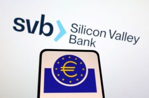 European Central Bank and SVB (Silicon Valley Bank) logos are seen in this illustration taken March 10, 2023. REUTERS/Dado Ruvic/Illustration