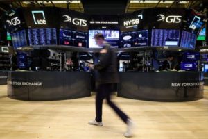 FILE PHOTO: Traders work on the floor of the New York Stock Exchange (NYSE) in New York City, U.S., March 28, 2023. REUTERS/Brendan McDermid