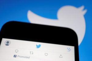 A promoted tweet on Twitter app is displayed on a mobile phone near a Twitter logo, in this illustration picture taken September 8, 2022. REUTERS/Florence Lo/Illustration