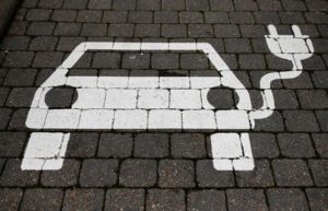 FILE PHOTO: A parking sign for electric vehicles is pictured in Gruenheide, Germany, November 13, 2019. REUTERS/Hannibal Hanschke/File Photo