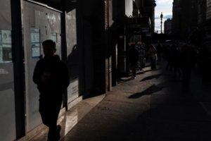 FILE PHOTO: A man walks past empty real estate outside Madison Square Garden in the Midtown section of New York City, U.S., January 24, 2023. REUTERS/Shannon Stapleton