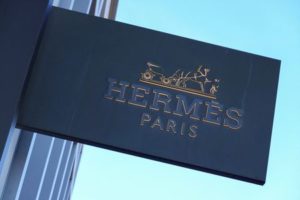 A Hermes store sign is seenat a shopping mall in