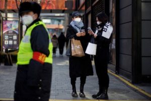 FILE PHOTO: Women with shopping bags stand in a street as China returns to work despite continuing coronavirus disease (COVID-19) outbreaks in Beijing, China, January 3, 2023. REUTERS/Thomas Peter