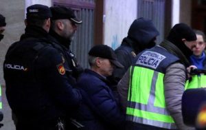 FILE PHOTO: Spanish national police officers lead away a 74-year-old man under arrest on suspicion of being the sender of letter-bombs in November and December to the Ukrainian and U.S. embassies and several institutions in Spain, in Miranda de Ebro, Spain January 25, 2023. REUTERS/Vincent West