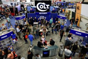 People attend the National Rifle Association (NRA) annual convention in Indianapolis, Indiana, U.S., April 14, 2023. REUTERS/Evelyn Hockstein