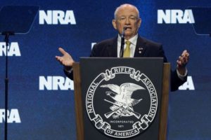 NRA President Charles Cotton speaks at the National Rifle Association (NRA) annual convention in Indianapolis, Indiana, U.S., April 14, 2023. REUTERS/Evelyn Hockstein