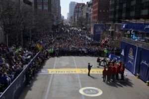 Members of the public fill Boylston Street to watch a dedication ceremony at the finish line on the ten year anniversary of the 2013 Boston Marathon bombings in Boston, Massachusetts, U.S., April 15, 2023. REUTERS/Brian Snyder