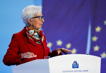 FRANKFURT (Reuters) – The European Central Bank can discuss changing its 2% inflation goal but only after it brings down inflation to that level, ECB President Christine Lagarde said on Monday.