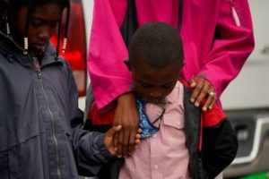 The Jacobs family prays during a vigil the day after a shooting during a teenager’s birthday party at Mahogany Masterpiece Dance Studio in Dadeville, Alabama, U.S. April 16, 2023. REUTERS/Cheney Orr