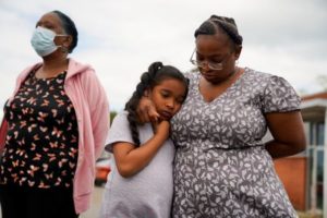 Adriana Pearson embraces her daughter Skyla during a vigil the day after a shooting during a teenager’s birthday party at Mahogany Masterpiece Dance Studio in Dadeville, Alabama, U.S. April 16, 2023. REUTERS/Cheney Orr