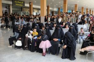 Relatives of freed detainees released unilaterally by Saudi Arabia wait for their arrival at Sanaa Airport on an International Committee of the Red Cross (ICRC) plane after three days of prisoner swaps between two sides in the Yemen conflict, in Sanaa, Yemen, April 17, 2023. REUTERS/Khaled Abdullah