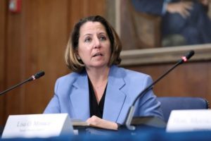 Deputy Attorney General Lisa O. Monaco delivers remarks about the prosecution of war crimes in Ukraine committed by Russian forces during a press conference at the Department of Justice in Washington, D.C. on April 17, 2023. REUTERS/Amanda Andrade-Rhoades.