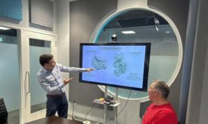 Robert Parrish, Head of the Quantum Chemistry division at QC Ware, and Matt Johnson, CEO of QC Ware, review computations on large metalloproteins, as Quantum software startup QC Ware launches a quantum-inspired software platform called Promethium to speed up the simulation of large molecules on conventional computers, in Palo Alto, California, U.S., March 29, 2023. QC Ware/Handout via REUTERS