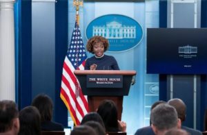 White House Press Secretary Karine Jean-Pierre speaks during a briefing at the White House in Washington, U.S. April 18, 2023. REUTERS/Nathan Howard