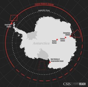 A map shows the locations of existing Chinese Antarctic stations and the Inexpressible Island site of a new station in this handout image. Center for Strategic and International Studies (CSIS)/Hidden Reach/Handout via REUTERS