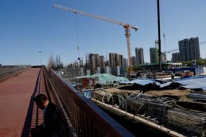 FILE PHOTO: A man sits on an overpass near a construction site of a subway station in Beijing, China April 18, 2023. REUTERS/Tingshu Wang/File Photo