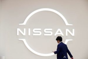 FILE PHOTO: A man walks in front of the Nissan logo at Nissan Gallery in Yokohama, Japan November 29, 2021. REUTERS/Androniki Christodoulou