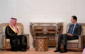 Syria’s President Bashar al-Assad meets with Saudi Foreign Minister Prince Faisal bin Farhan, in Damascus, Syria, in this handout released by SANA on April 18, 2023. SANA/Handout via REUTERS