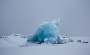 Blue ice is seen at frozen Kongsfjord near Ny-Aalesund, Svalbard, Norway, April 8, 2023. Researchers have been studying the polar region for decades, with Ny-Aalesund’s weather records going back more than 40 years, but as Svalbard temperatures climb up to seven times faster than the global average, scientists’ work has become vitally important because what happens in the Arctic can impact global sea levels, storms in North America and Europe, and other factors far beyond the frozen region. REUTERS/Lisi Niesner