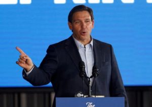 FILE PHOTO: Florida Governor Ron DeSantis speaks in Pinellas Park