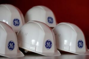 FILE PHOTO: The General Electric logo is pictured on working helmets during a visit at the General Electric offshore wind turbine plant in Montoir-de-Bretagne, near Saint-Nazaire, western France, November 21, 2016. REUTERS/Stephane Mahe/File Photo/File Photo