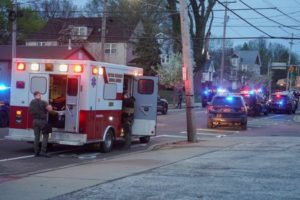 Fire fighters are pictured as demonstrators attend a protest held after a grand jury voted against indicting police officers in the fatal shooting of an unarmed Black man Jayland Walker, in Akron, Ohio, U.S. April 19, 2023. REUTERS/Dieu-Nalio Chery