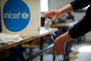 FILE PHOTO: A Syrian refugee student takes part in a washing hands activity as part of an awareness campaign about coronavirus initiated by OXFAM and UNICEF at Al Zaatari refugee camp in the Jordanian city of Mafraq, near the border with Syria, March 11, 2020. REUTERS/ Muhammad Hamed