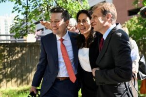 FILE PHOTO: Dominion lawyers embrace after Dominion Voting Systems and Fox settled the defamation lawsuit over Fox’s coverage of debunked election-rigging claims, in Wilmington, Delaware, U.S., April 18, 2023. REUTERS/Mark Makela/File Photo