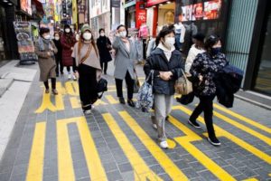 FILE PHOTO: Women wearing masks walk in a shopping district amid the coronavirus disease (COVID-19) pandemic in Seoul, South Korea, November 29, 2021. REUTERS/Heo Ran
