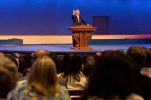 FILE PHOTO: Senior pastor Robert Jeffress speaks during a service at the First Baptist evangelical Southern Baptist megachurch, praising the overturn of the landmark Roe v. Wade abortion decision by the U.S. Supreme Court, in Dallas, Texas, U.S. June 26, 2022. REUTERS/Shelby Tauber/File Photo