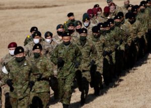 FILE PHOTO: Airborne troops from Japan, U.S., Britain and Australia take part in a new year joint military drill at Narashino exercise field in Funabashi, east of Tokyo, Japan January 8, 2023. REUTERS/Issei Kato