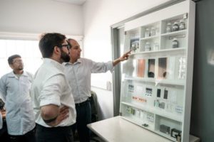 Chile’s President Gabriel Boric looks to lithium samples and applications while visiting Universidad de Antofagasta venue, after saying on Thursday he would nationalize the country’s lithium industry, in the northern city of Antofagasta, Chile April 21, 2023. Chilean presidency/Ximena Navarro/Handout via REUTERS