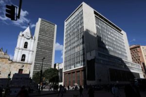 FILE PHOTO: General view of Colombia’s central bank in Bogota, Colombia October 9, 2019. Picture taken October 9, 2019. REUTERS/Luisa Gonzalez/File Photo