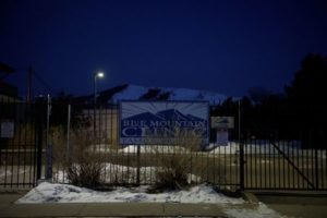 A metal gate surrounds Blue Mountain Clinic after the sun has set in Missoula, Montana, U.S. February 22, 2023. The clinic regularly hosts fundraisers and goes to the capital to advocate for reproductive rights and to defend Montanans’ access to gender affirming care. “[Blue Mountain Clinic] is one of the major heartbeats of this community”, Gay Allison, a clinic patient, who received an abortion prior to Roe v. Wade, said. REUTERS/Callaghan O’Hare