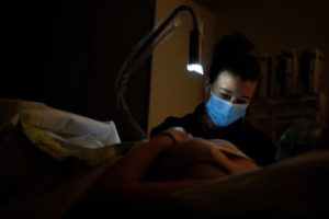 Julie Mullette, an abortion care coordinator, inserts an IV in a patient ahead of a surgical abortion procedure at Blue Mountain Clinic in Missoula, Montana, U.S. February 23, 2023. According to NPR, a recent survey from the Public Religion Research Institute found a greater percentage of Montanans than of people in any bordering state think abortion should be legal in most or all cases. REUTERS/Callaghan O’Hare