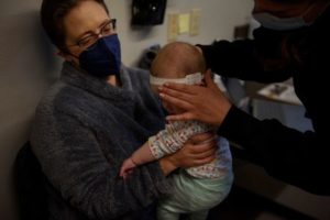 Abigail Carey, 43, looks on during an infant check up at Blue Mountain Clinic in Missoula, Montana, U.S. February 23, 2023. Blue Mountain Clinic is divided into two hallways, which are separated by a desk of medical assistants. One hallway encompasses the abortion and reproductive side of the clinic’s practice and includes exam rooms and rooms for patients to relax ahead of their procedures. The other side of the clinic contains exam rooms for family medicine appointments as well as a therapist’s office. “It kind of makes sense that’s integrated as part of healthcare”, Carey said about Blue Mountain Clinic providing abortions. REUTERS/Callaghan O’Hare