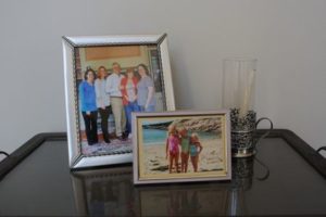 Framed family photographs show Wendy Nelson with her sisters and their parents, as well as her three children, in the foyer of her home in Foxborough, Massachusetts, U.S., March 21, 2023. Wendy Nelson’s mother died from Alzheimer’s disease, her father suffers from it, and genetic tests show that Wendy carries two APOE4 gene variants, and her three daughters each carry one APOE4 gene variant, indicating an increased risk of Alzheimer’s disease. REUTERS/Brian Snyder