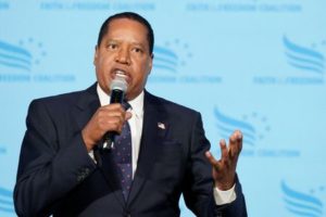 Larry Elder speaks at the Iowa Faith & Freedom Coalition Spring Kick-off in West Des Moines, Iowa, U.S. April 22, 2023. REUTERS/Eduardo Munoz