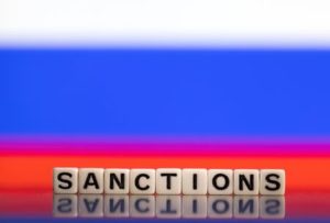 FILE PHOTO: Plastic letters arranged to read “Sanctions” are placed in front of Russian flag colors in this illustration taken February 25, 2022. REUTERS/Dado Ruvic/Illustration