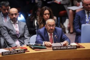 United Arab Emirates Minister of State Khalifa Shaheen Al Marar attends a meeting of the United Nations Security Council on “Effective multilateralism through the defence of the principles of the Charter of the United Nations,” at the U.N. headquarters in New York, U.S., April 24, 2023. REUTERS/Brendan McDermid