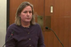 FILE PHOTO: Kimberly Potter, a former police officer, prepares to address the victim’s family before she is sentenced for manslaughter in the fatal shooting of Black motorist Daunte Wright during a traffic stop, in a still image from video in Minneapolis, Minnesota, U.S. February 18, 2022. Pool via REUTERS