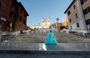 FILE PHOTO: Models present creation from Valentino’s “The Beginning” Fall-Winter 2022/2023 Haute Couture collection during a show on a catwalk on the Spanish Steps in the historic centre of Rome, Italy July 8, 2022. REUTERS/Yara Nardi