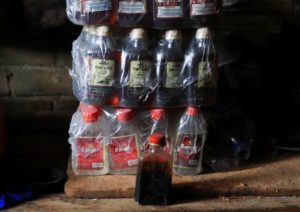 A view shows cases of bottles containing alcohol at a brewing facility that makes fake whisky, brandy, vodka and other spirits, in Harare, Zimbabwe March 23, 2023 REUTERS/Philimon Bulawayo