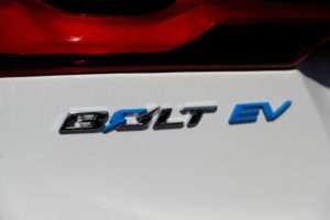 FILE PHOTO: A close-up view of the Chevrolet Bolt electric vehicle is seen at Stewart Chevrolet in Colma, California, U.S., October 3, 2017. REUTERS/Stephen Lam