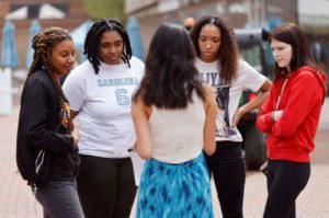 FILE PHOTO: Sarah Zhang, co-founder of the Affirmative Action Coalition at the University of North Carolina, speaks to a diverse group of fellow students about race-conscious admissions to colleges as the Supreme Court weighs the issue, on the university’s campus in Chapel Hill, North Carolina, U.S., March 27, 2023. REUTERS/Jonathan Drake