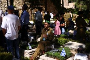 Israelis pay tribute at graves on Israel’s Memorial Day at Mount Herzl military cemetery, in Jerusalem, April 25, 2023. REUTERS/Ronen Zvulun