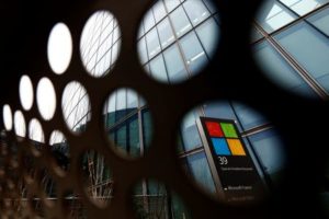 FILE PHOA view shows a Microsoft logo at Microsoft offices in Issy-les-Moulineaux near Paris, France, January 25, 2023. REUTERS/Gonzalo Fuentes
