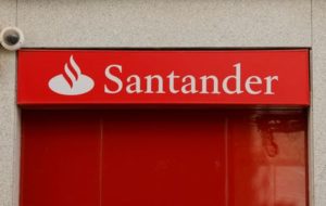 FILE PHOTO: The logo of Santander bank is seen outside